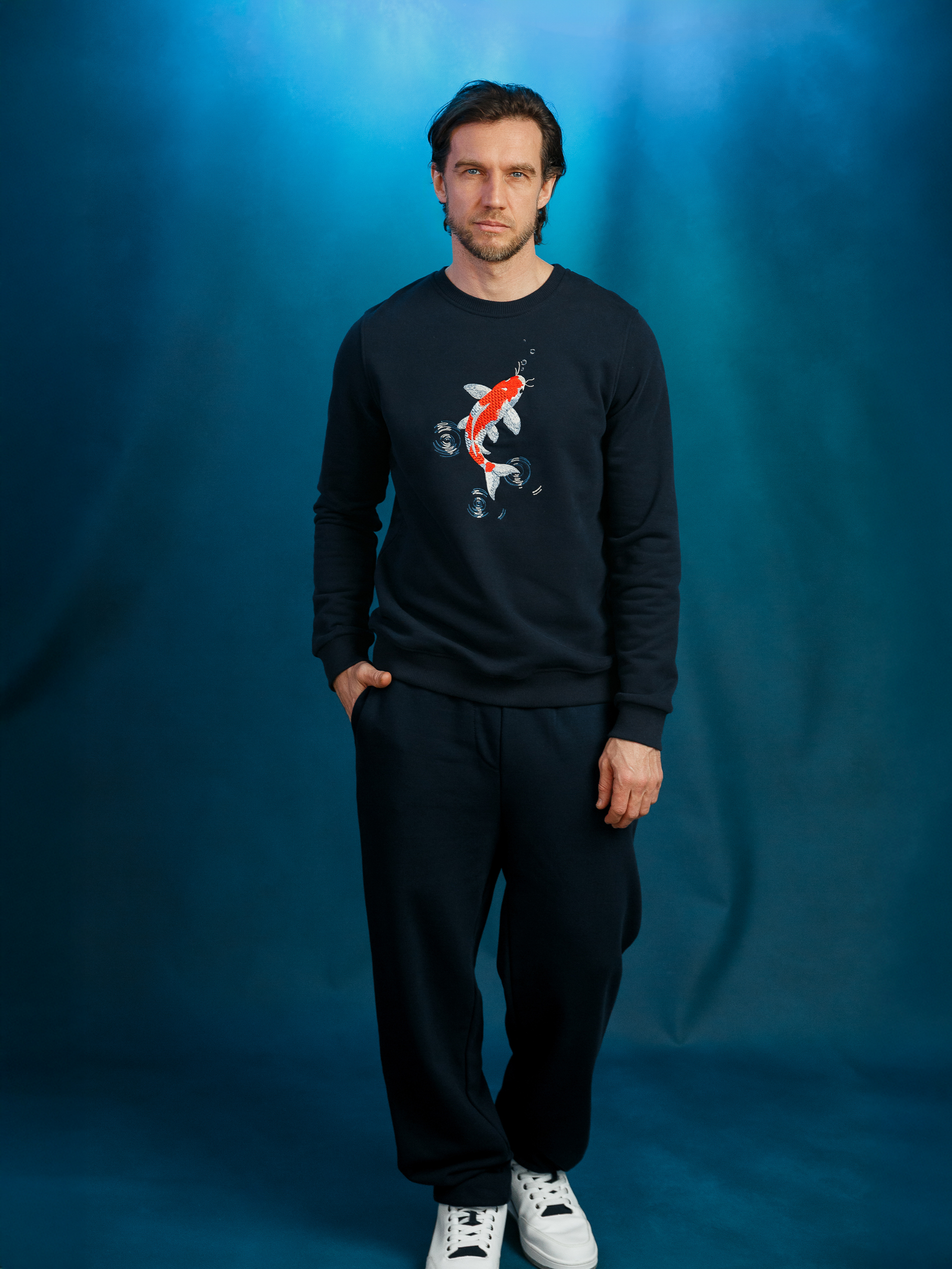 Комфортные брюки темно-синего цвета.