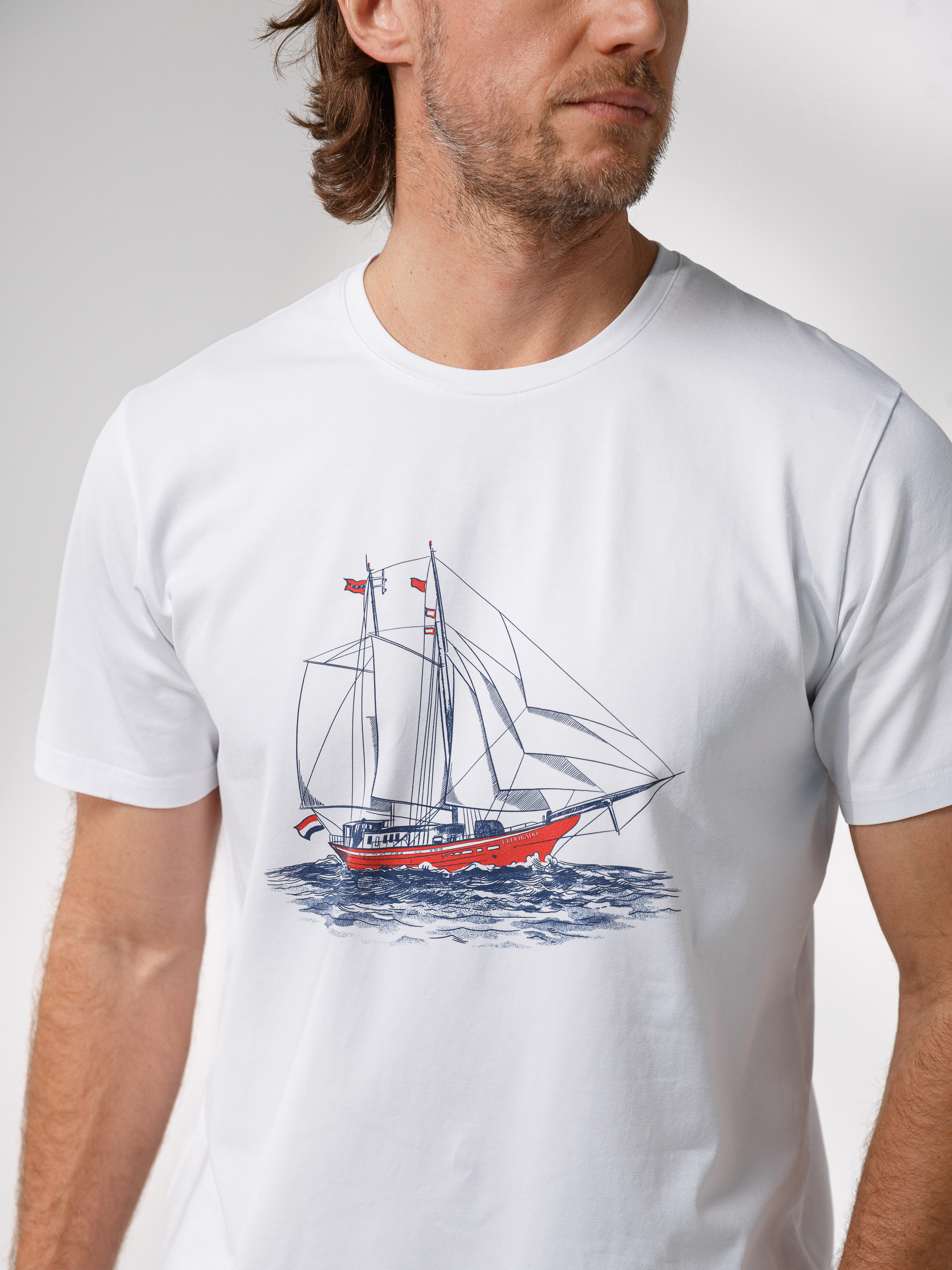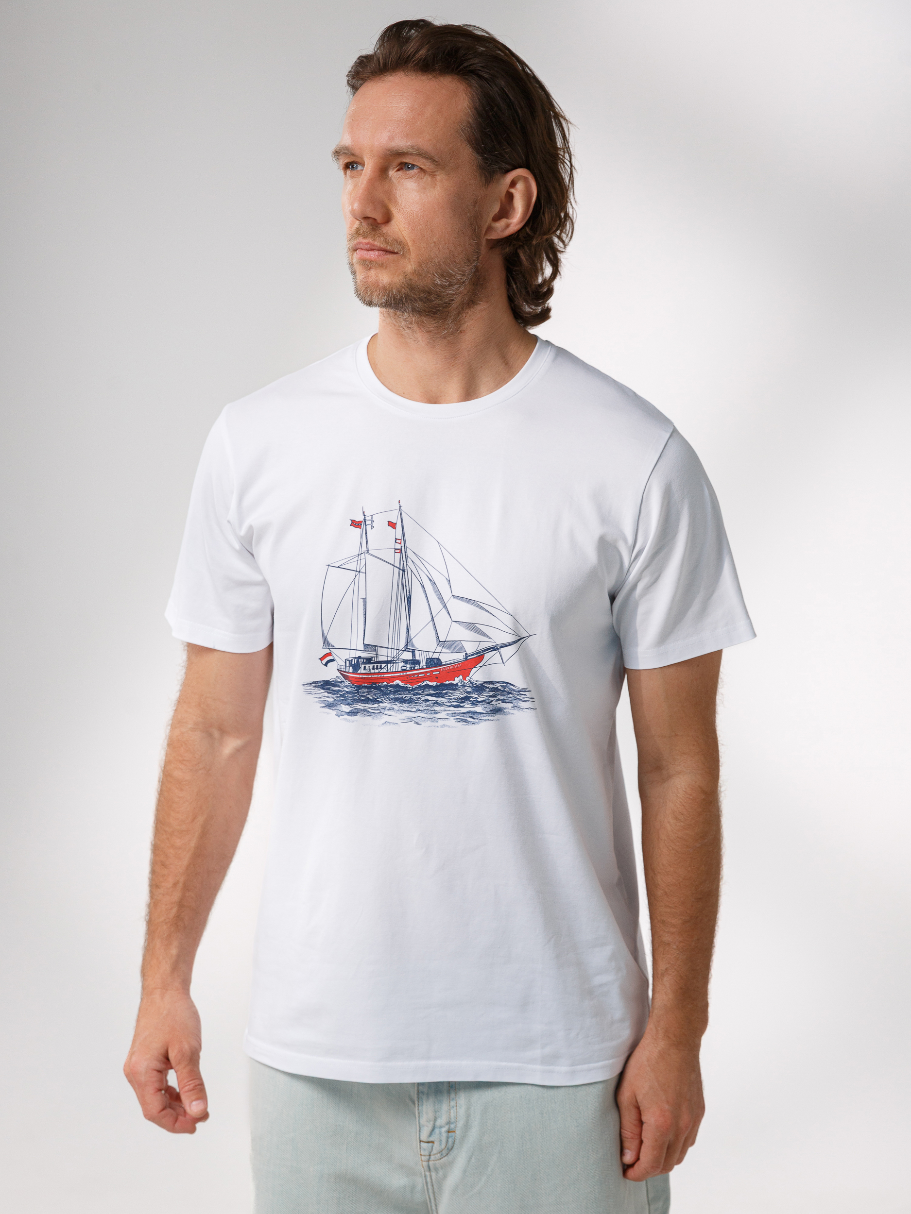 Футболка с принтом в виде графического рисунка парусника Эльдорадо.
