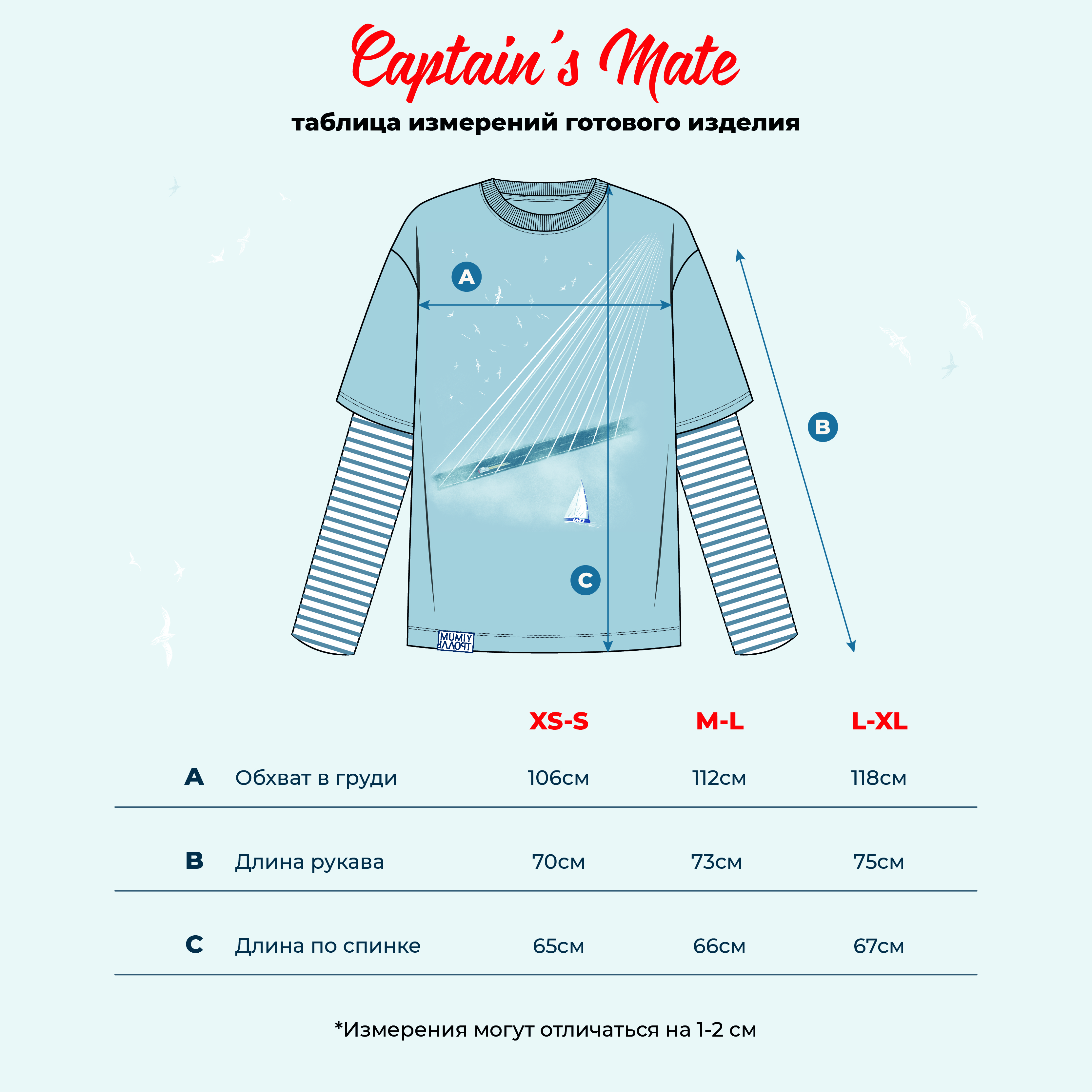 Принт выполнен в технике шелкографии. На подоле жаккардовый шеврон с логотипом группы Мумий Тролль. Здесь чайки мне запели на знакомом языке.