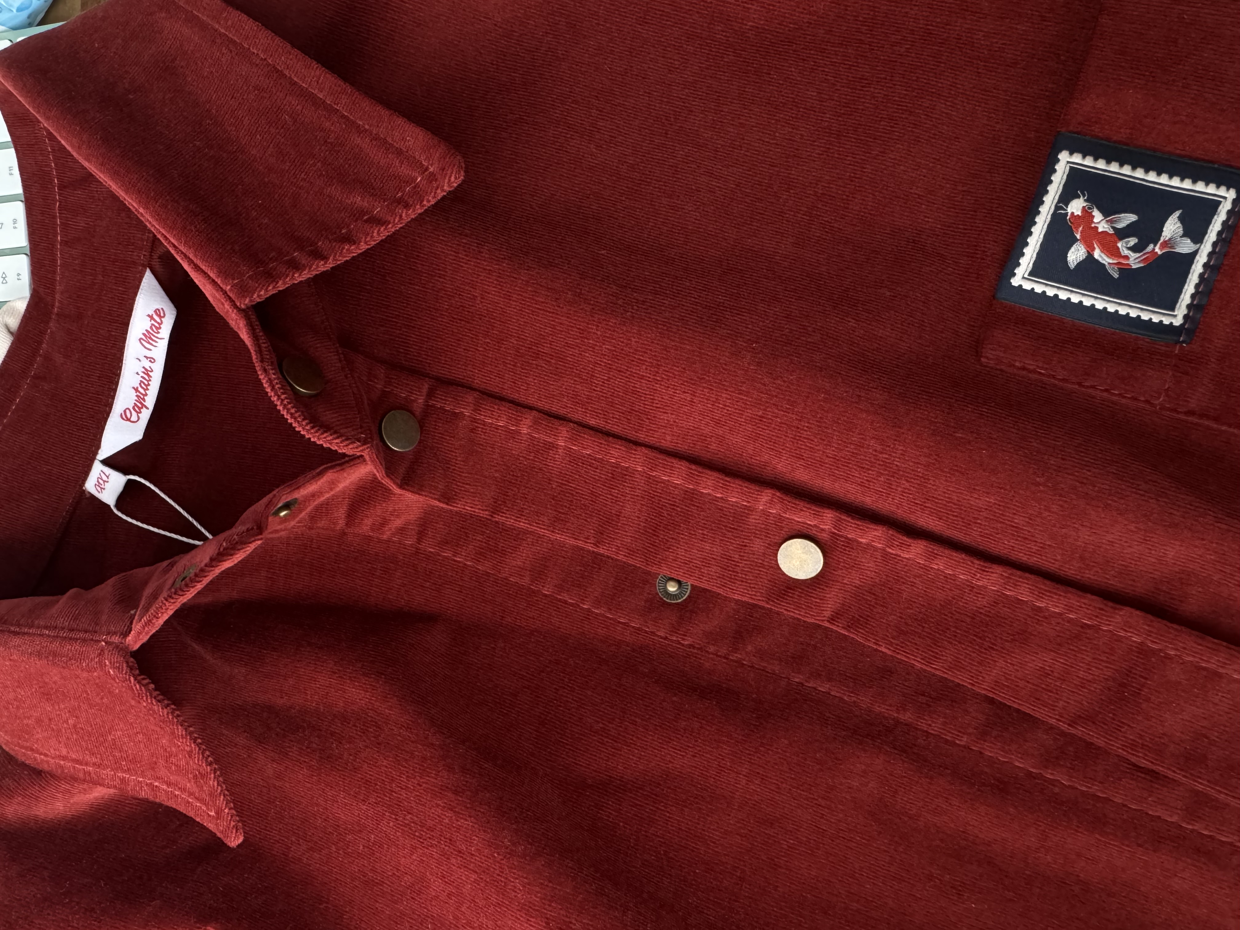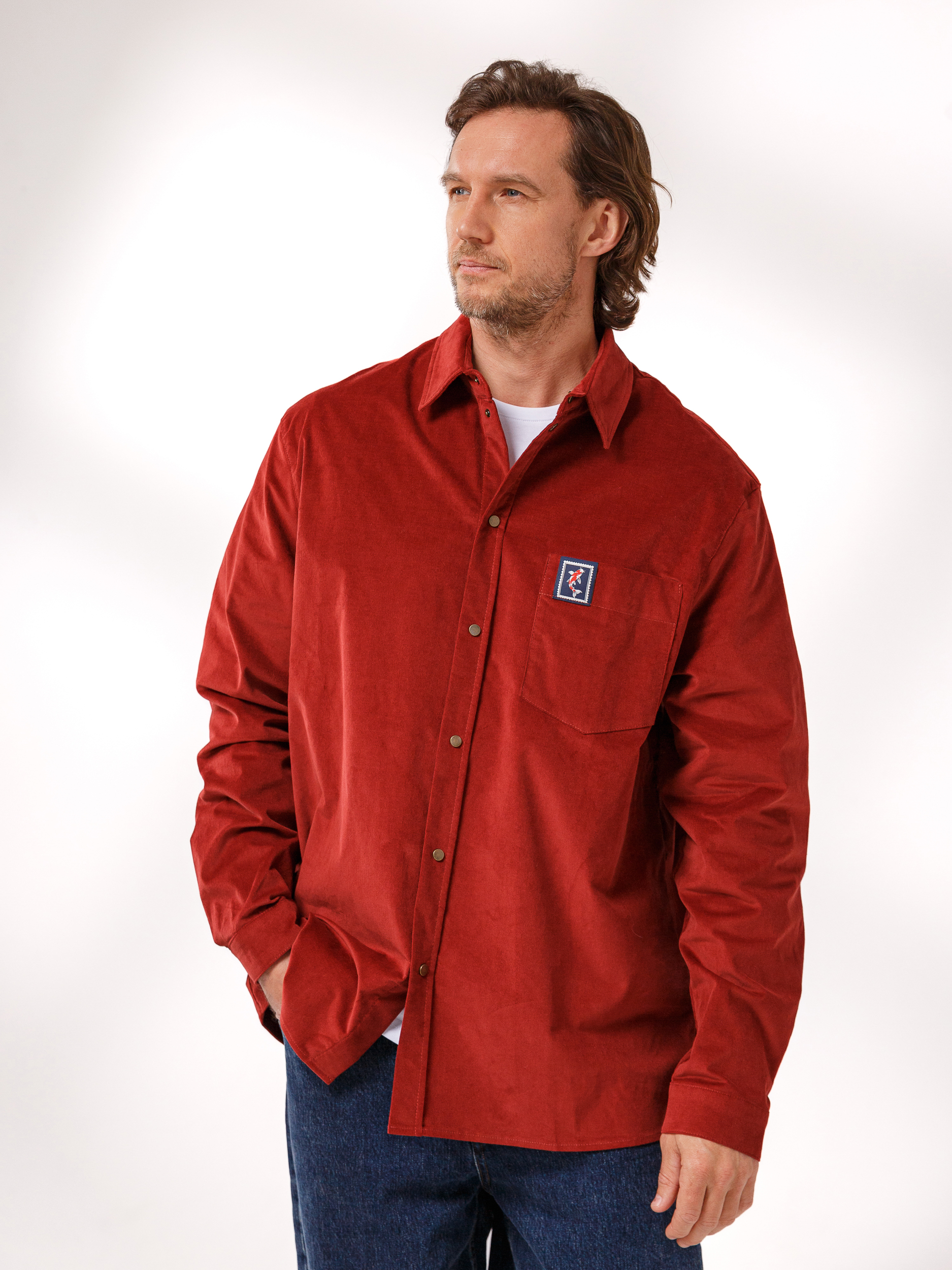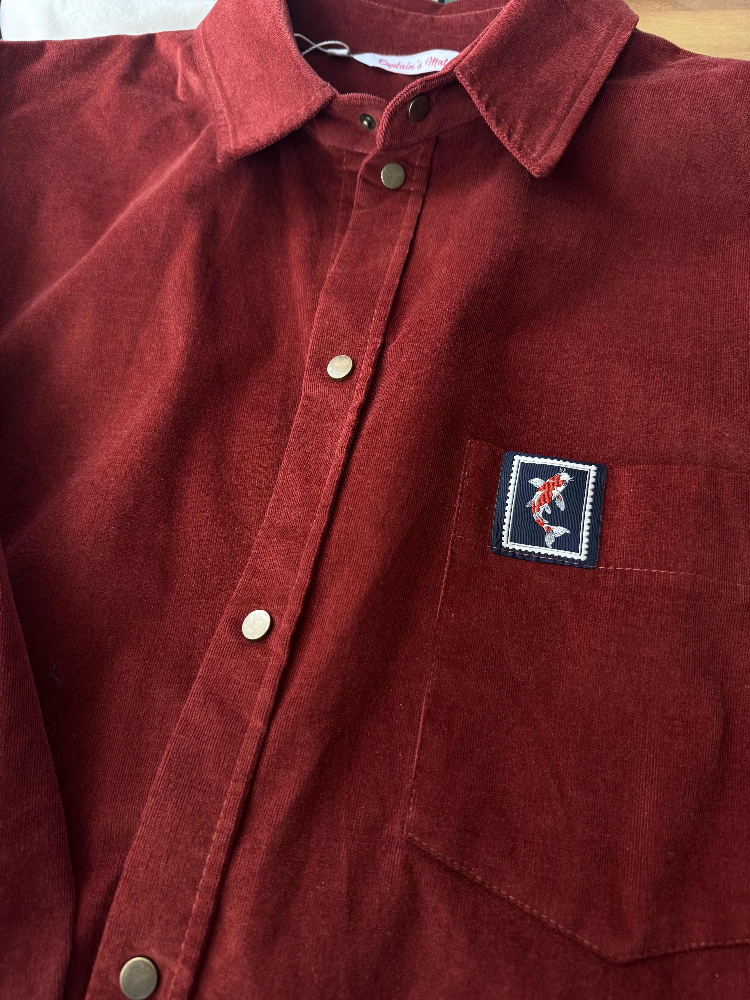 Рубашка из плотного микровельвета насыщенного рыжего цвета, словно яркий кленовый лист в японском саду. На кармашке - рыбка Кои, символ, приносящий счастье и удачу.