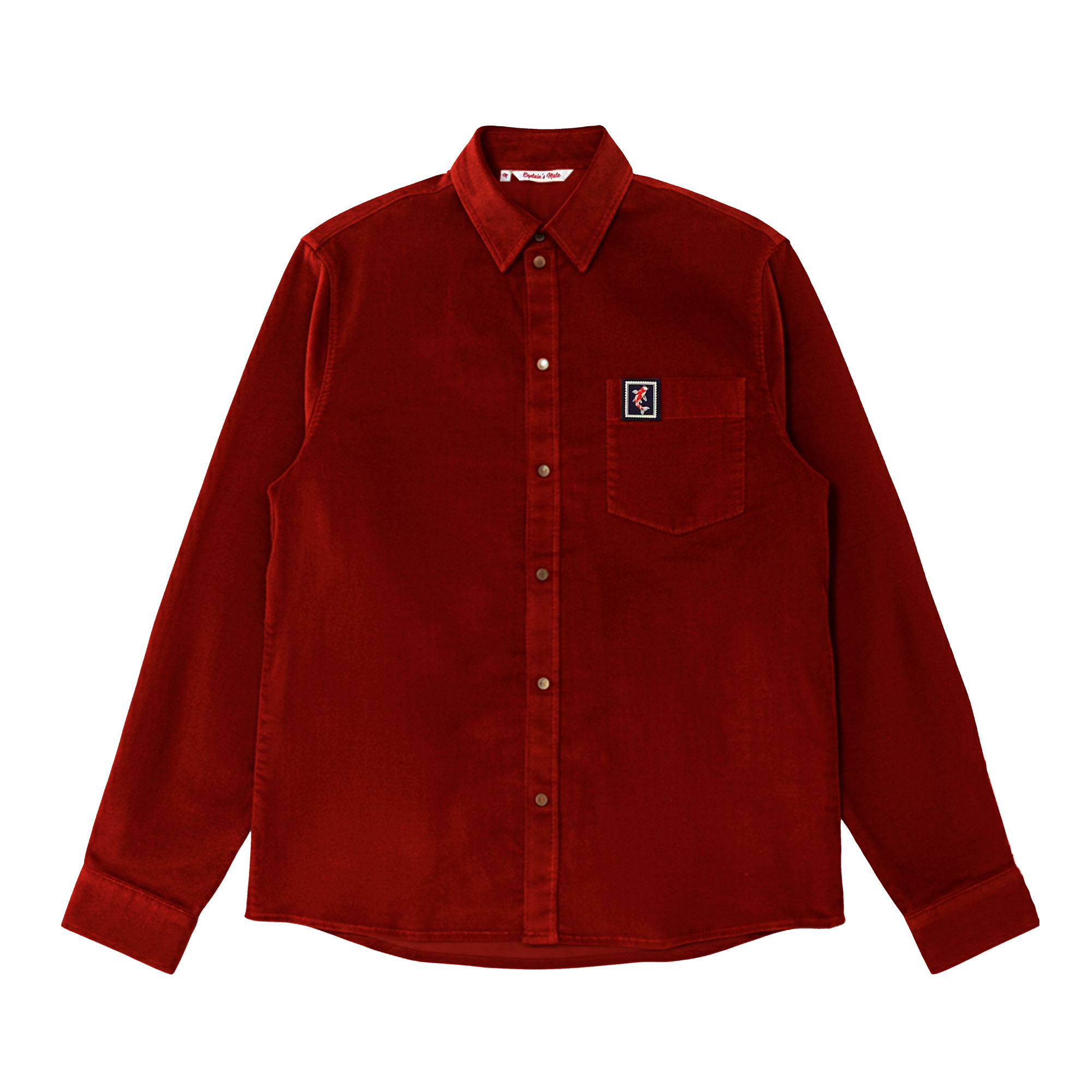 Рубашка из плотного микровельвета насыщенного рыжего цвета. Застёгивается на кнопки бронзового цвета. На кармашке - символ, приносящий счастье и удачу - Рыбка Кои. Цвет рубашки, словно яркий кленовый лист.