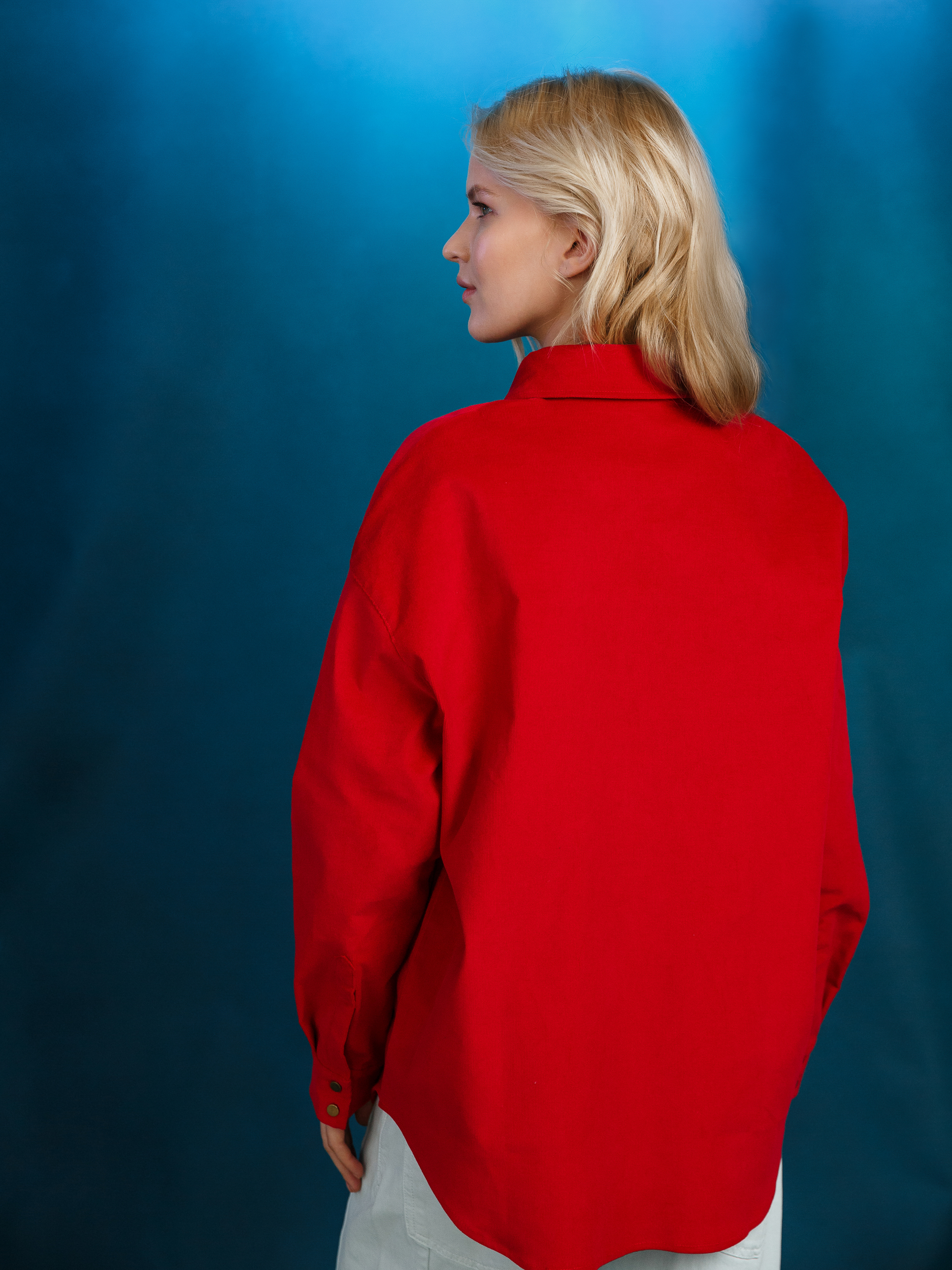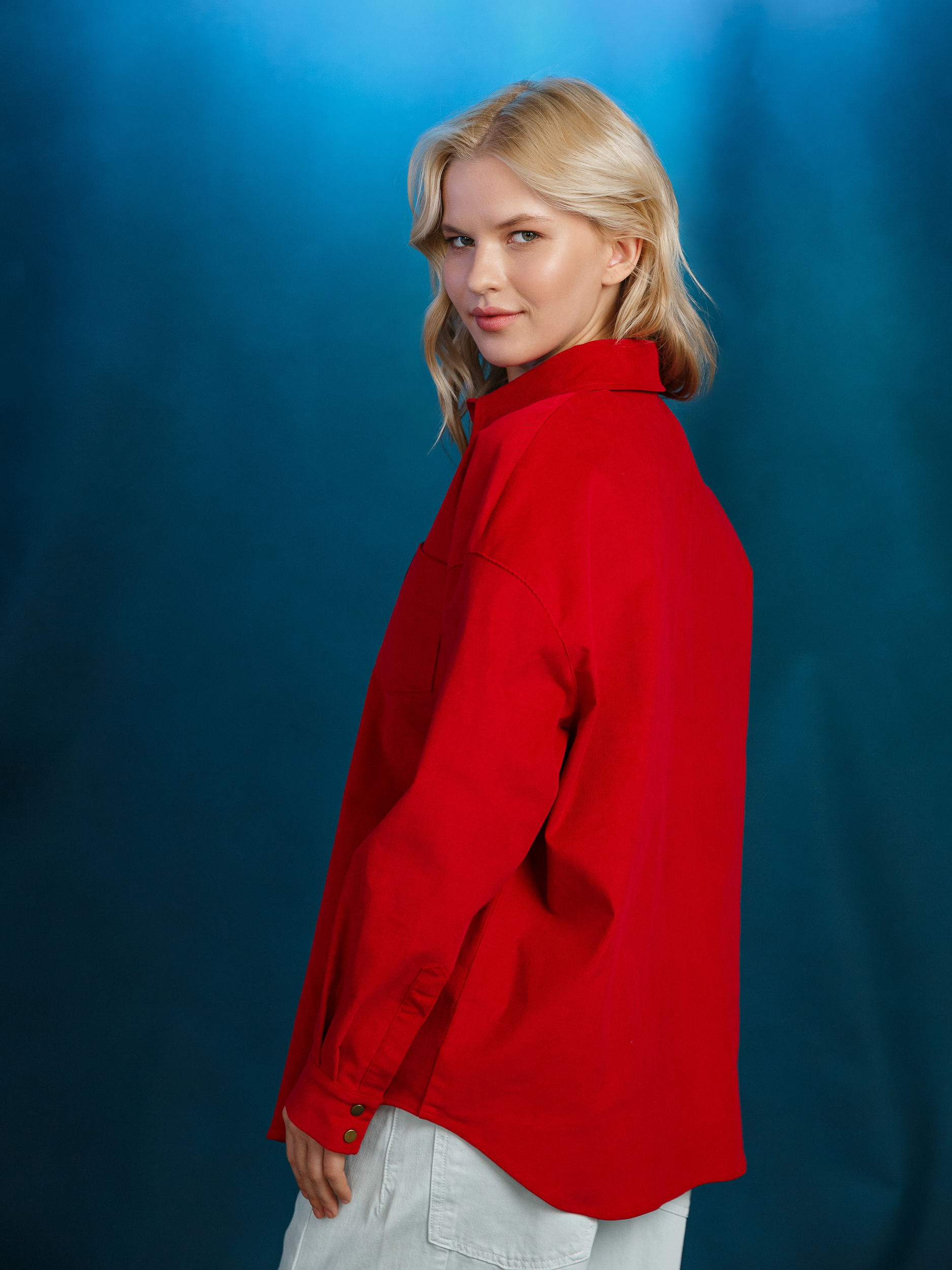 Рубашка из плотного микровельвета насыщенного темно-красного цвета с рубиновым оттенком. На кармашке - рыбка Кои, символ, приносящий счастье и удачу. Именно этот образ вдохновил нас на рубашку, в которой чувствуешь вдохновение и уверенность в своих силах. Кнопки бронзового цвета добавляют легкий винтажный акцент.