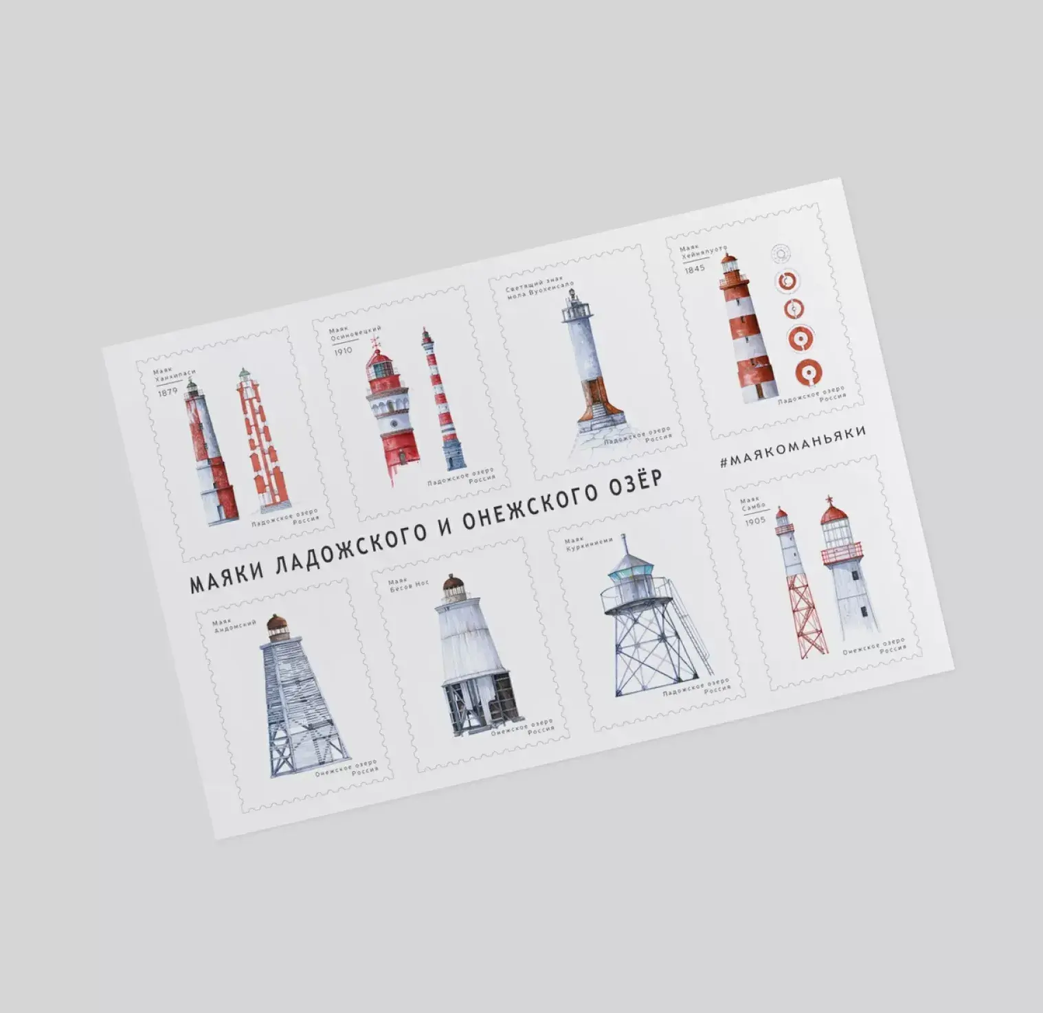 Стикерпак с контурной вырубкой стикеров в форме почтовой марки.