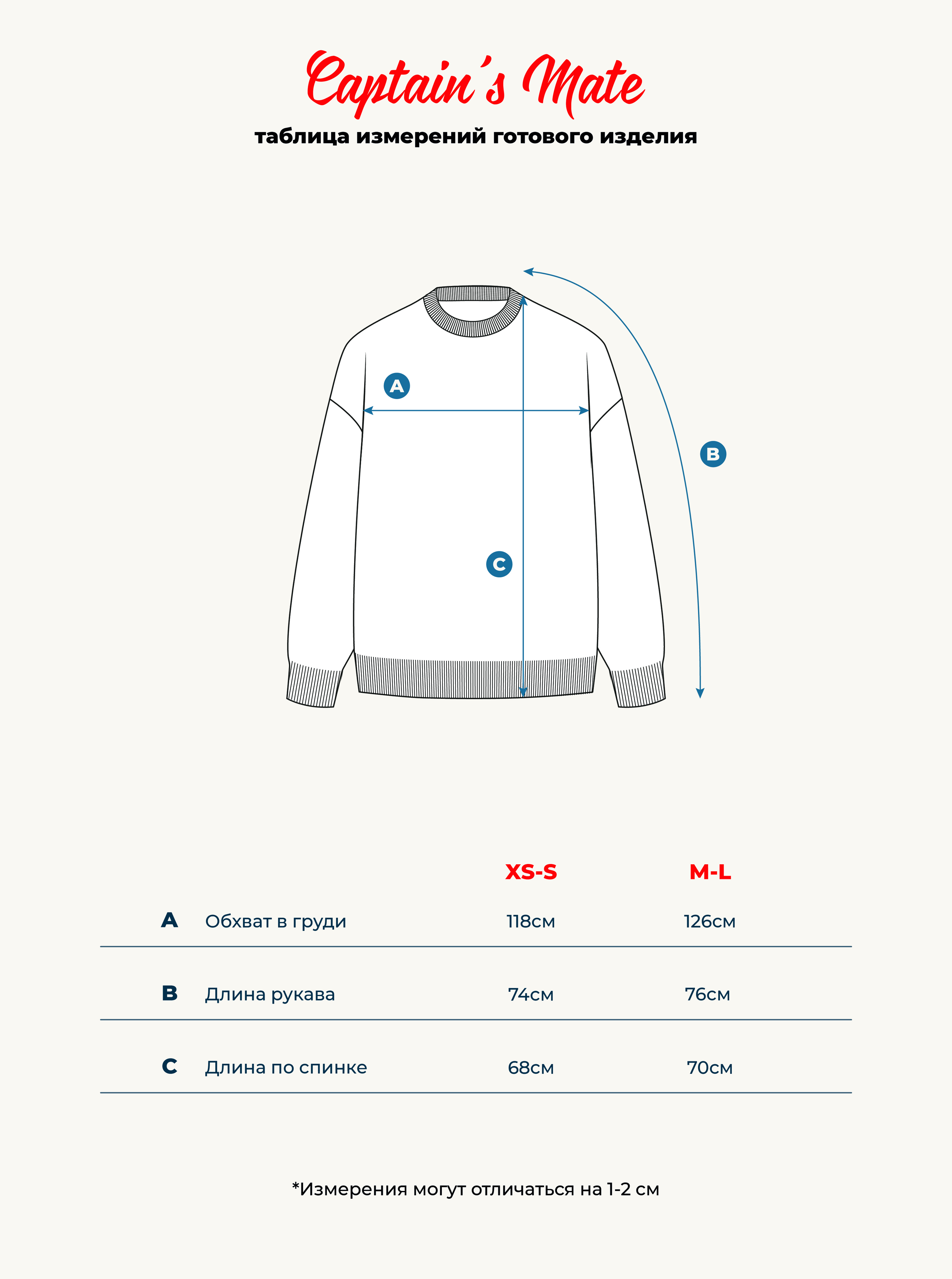 | Размер | Длина по спинке | Обхват груди | Длина рукава |