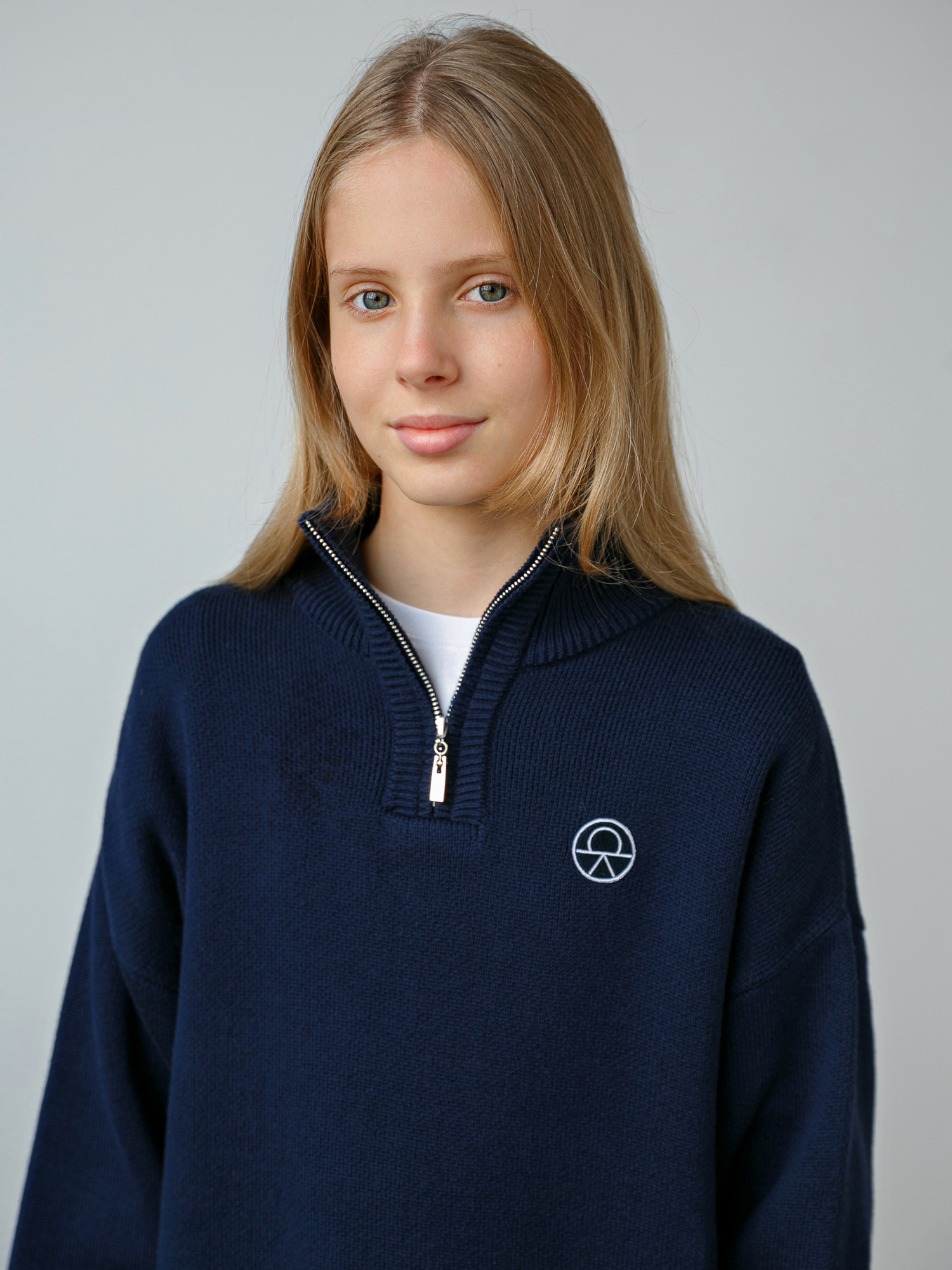 Вязаный свитер с горловиной на молнии. Актуальный крой, который подходит и девочкам и мальчикам.