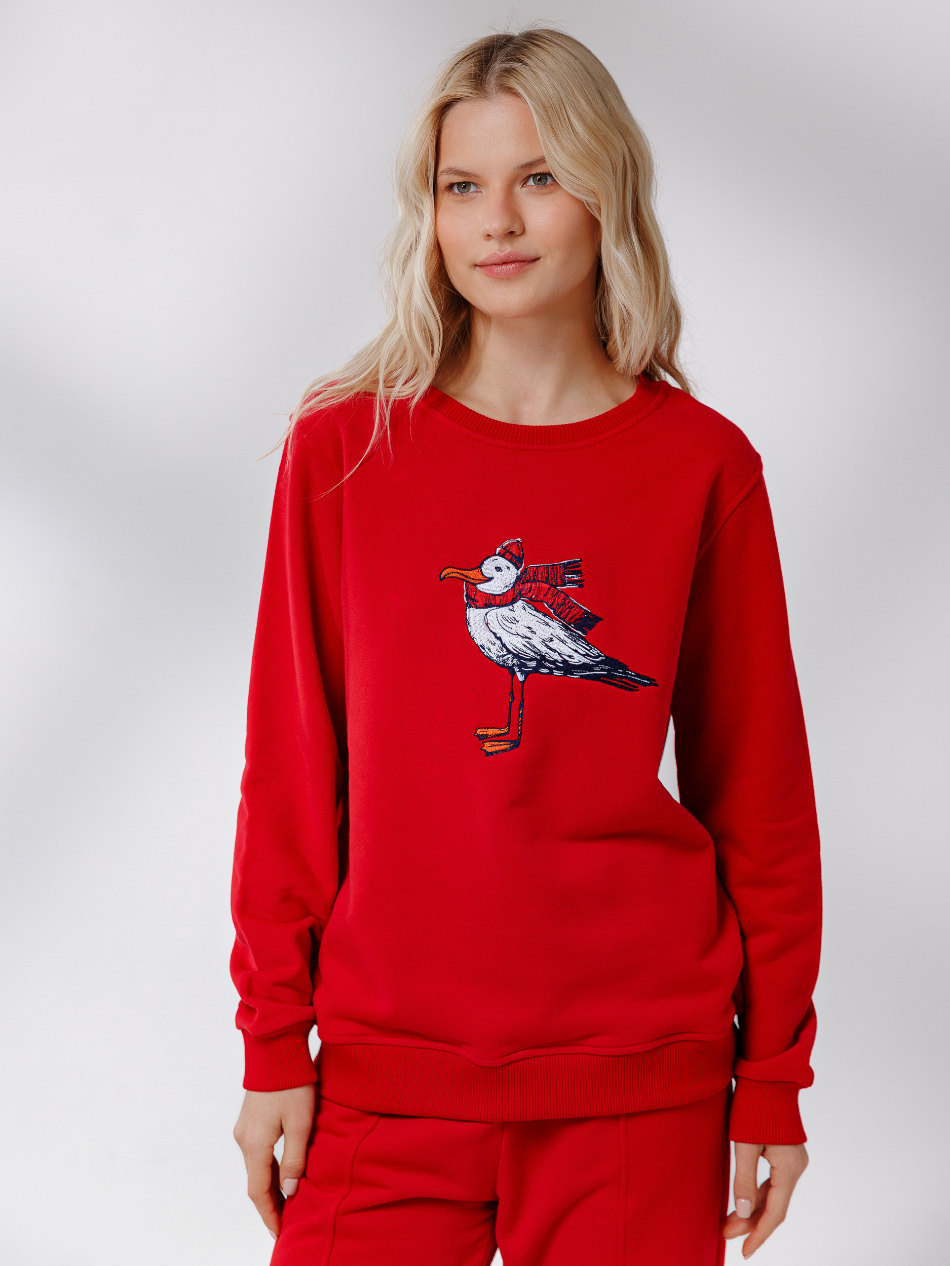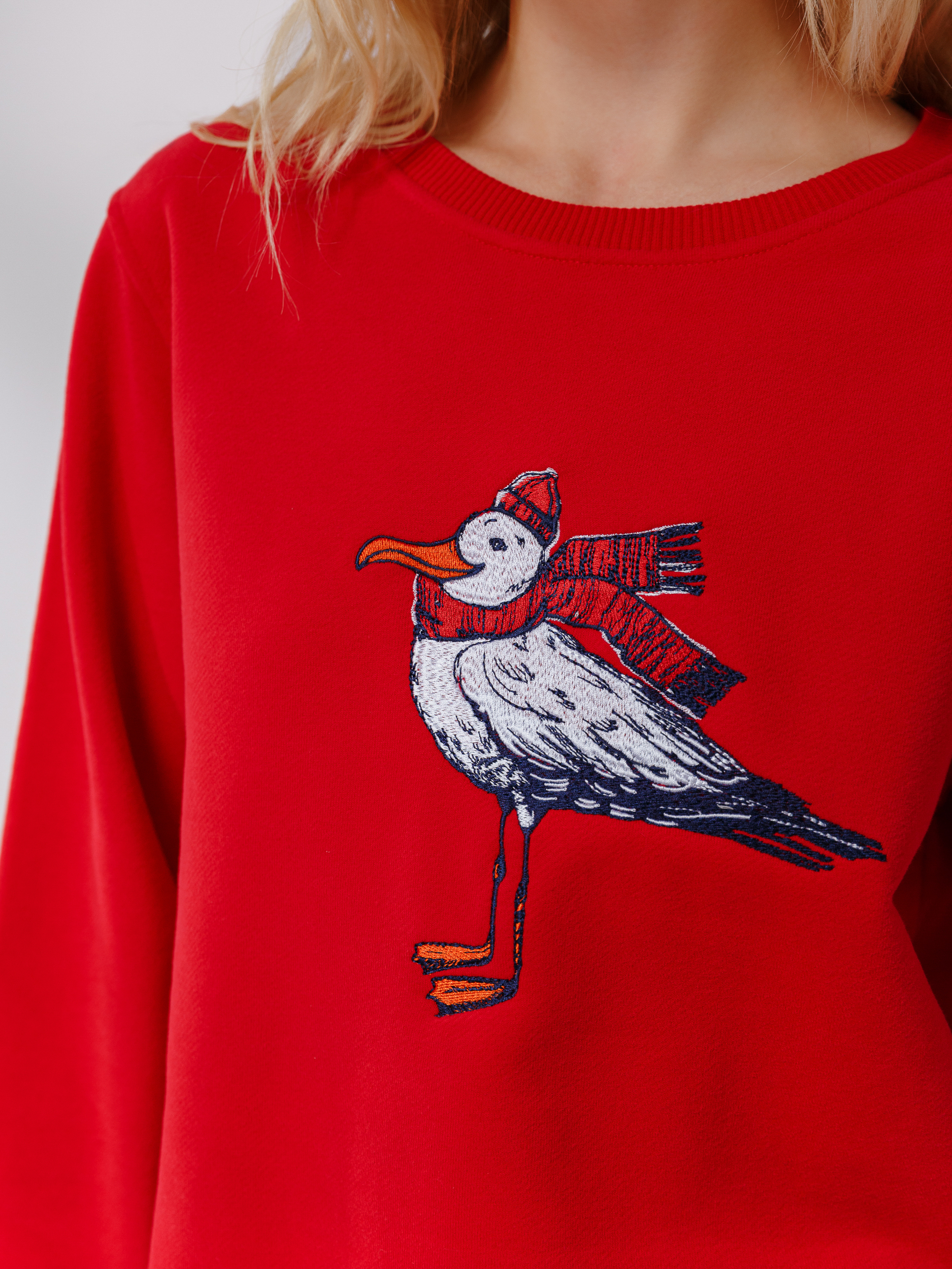 Вышивка на груди с изображением самой морской птицы и нашим вдохновением - морской чайки в зимнем исполнении.