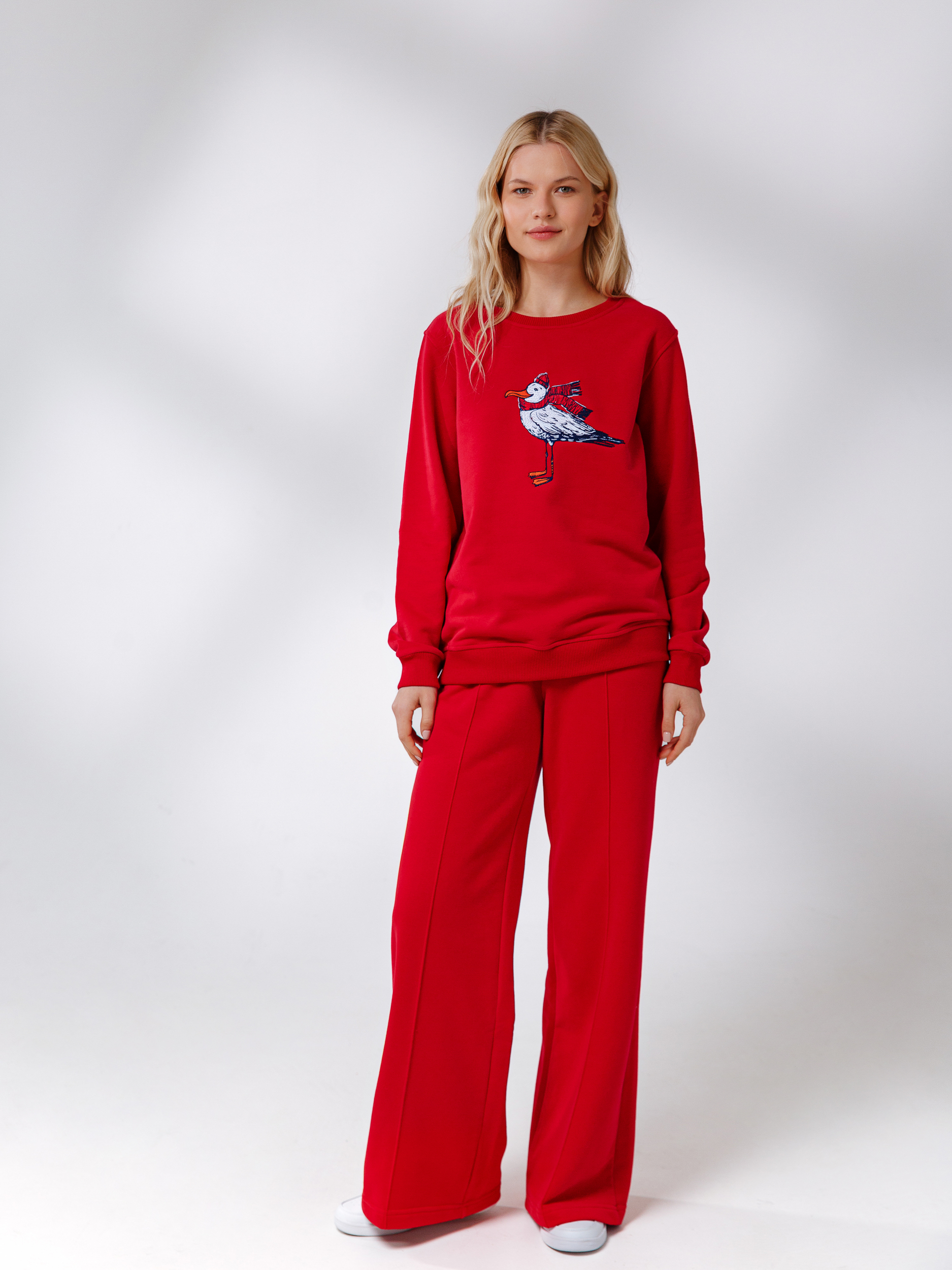 Свитшот из хлопкового трикотажа с эффектом велюра ярко-красного цвета.