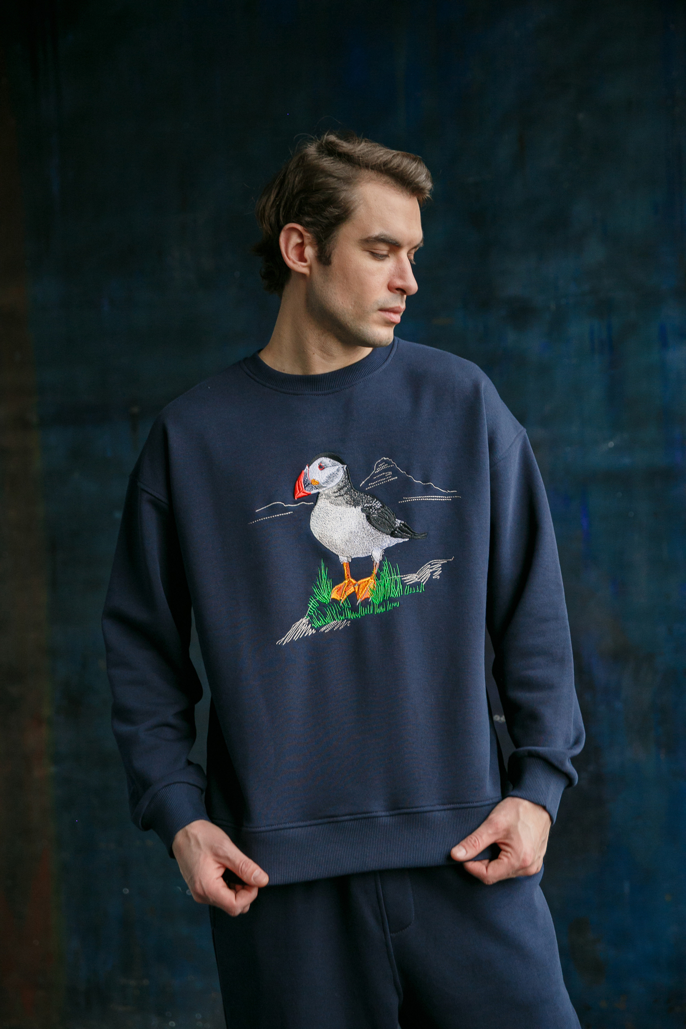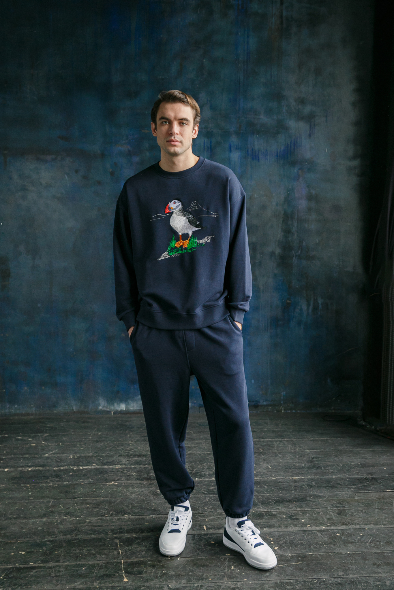 Свитшот классического кроя из мягкого трикотажа глубокого синего цвета нэви.