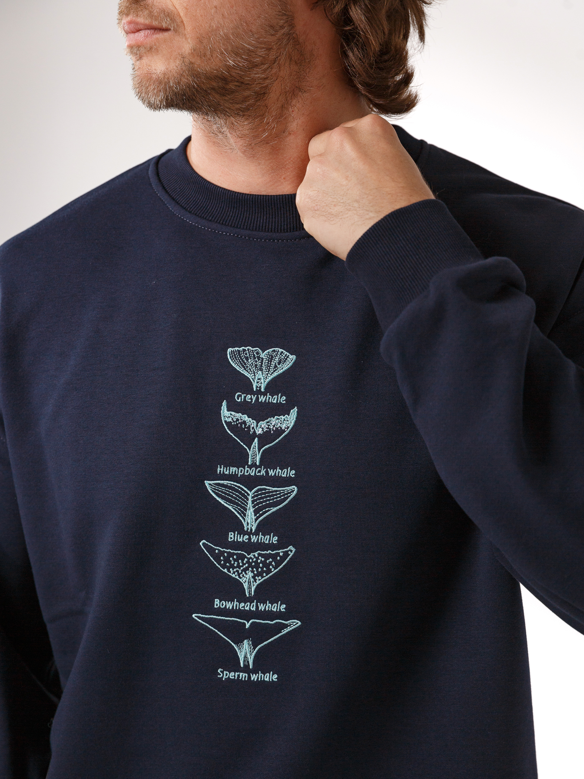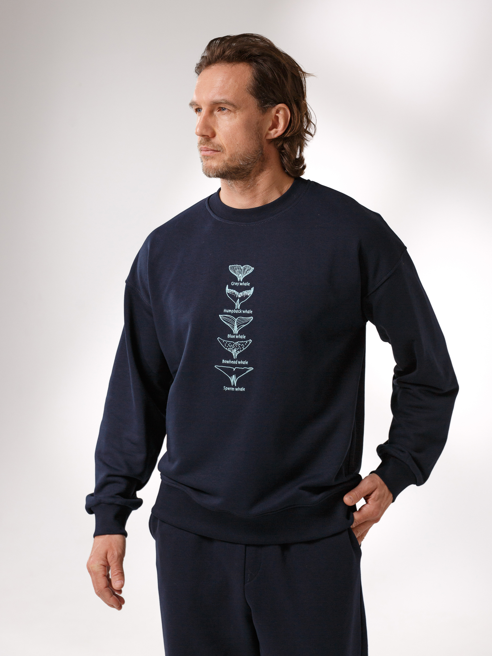 Свитшот классического кроя из хлопкового трикотажа в тёмно-синем оттенке.