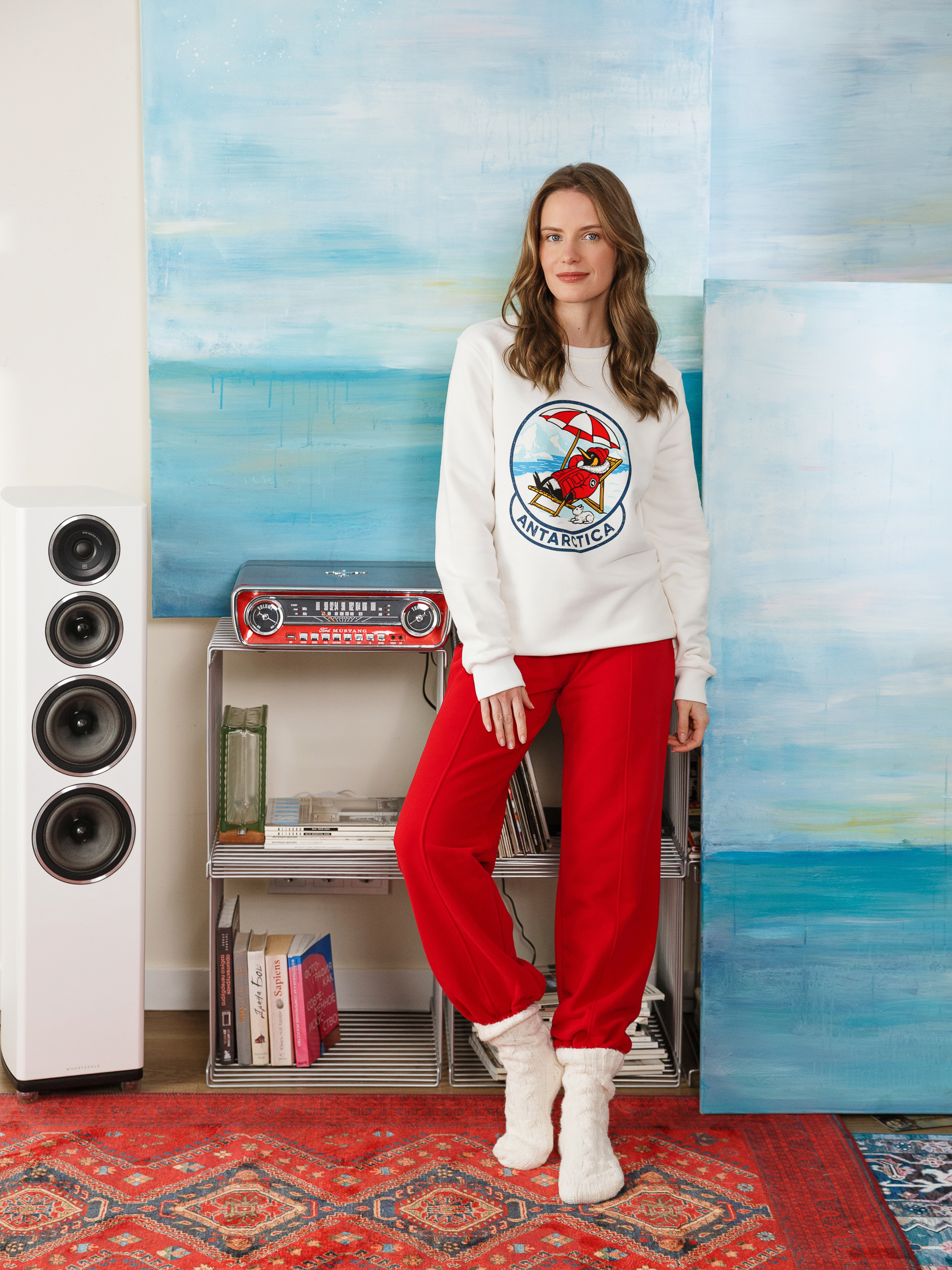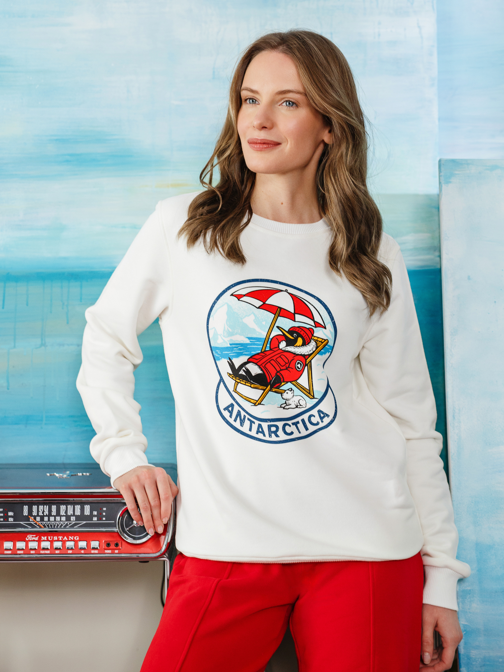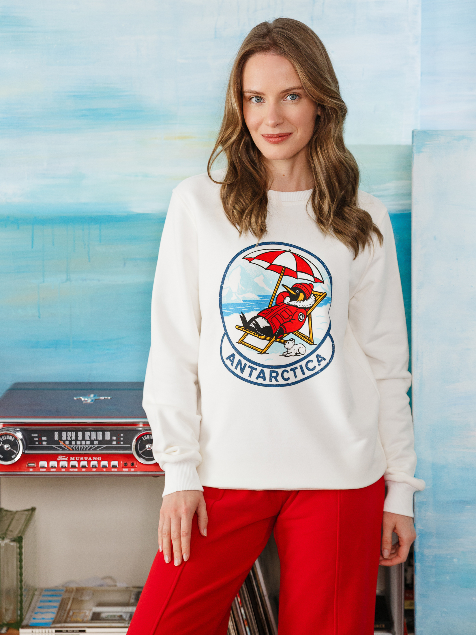 Свитшот классического кроя из полотна с эффектом велюра молочного цвета.