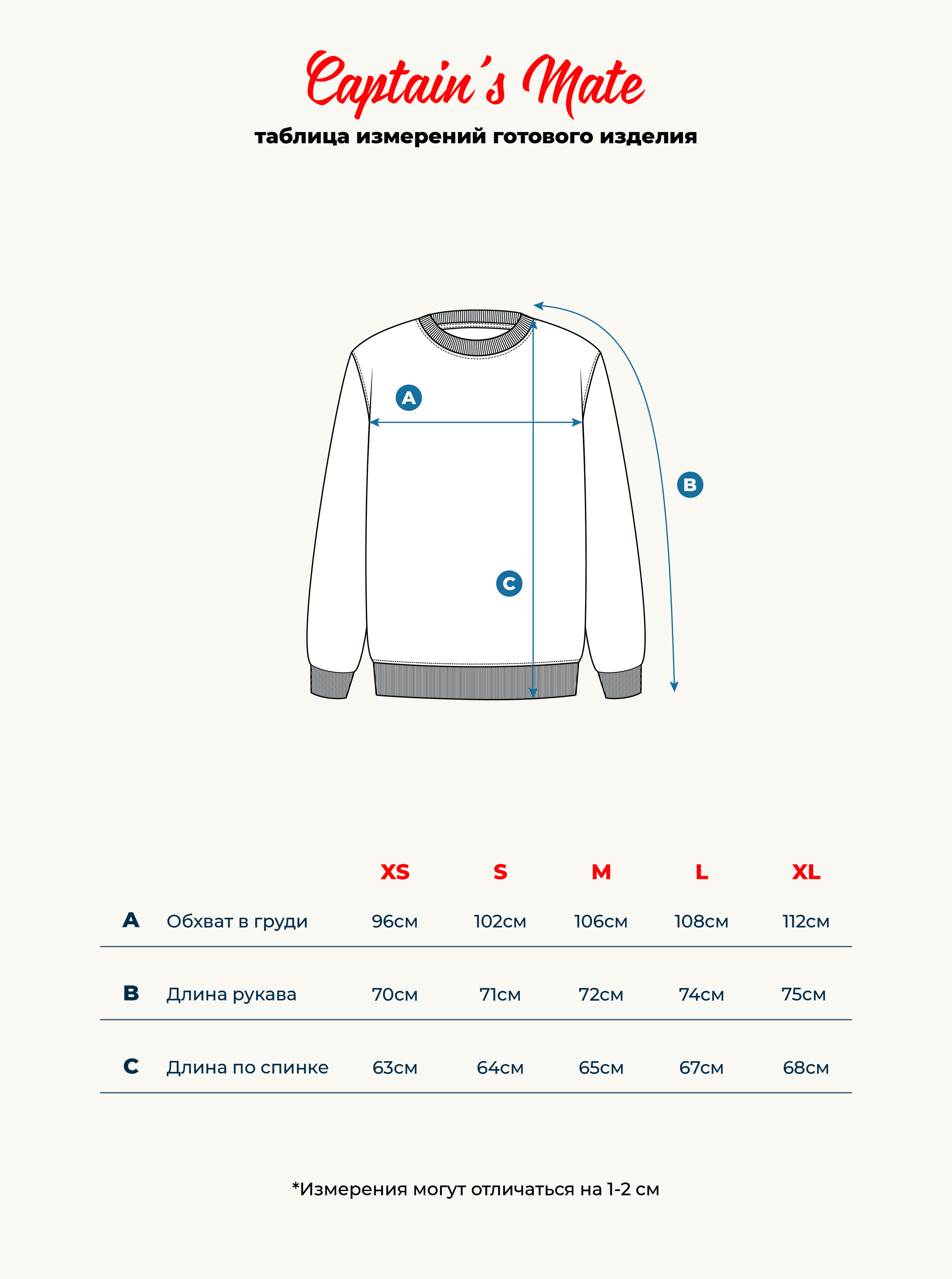 | Размер | Длина по спинке | Длина рукава | Обхват груди |