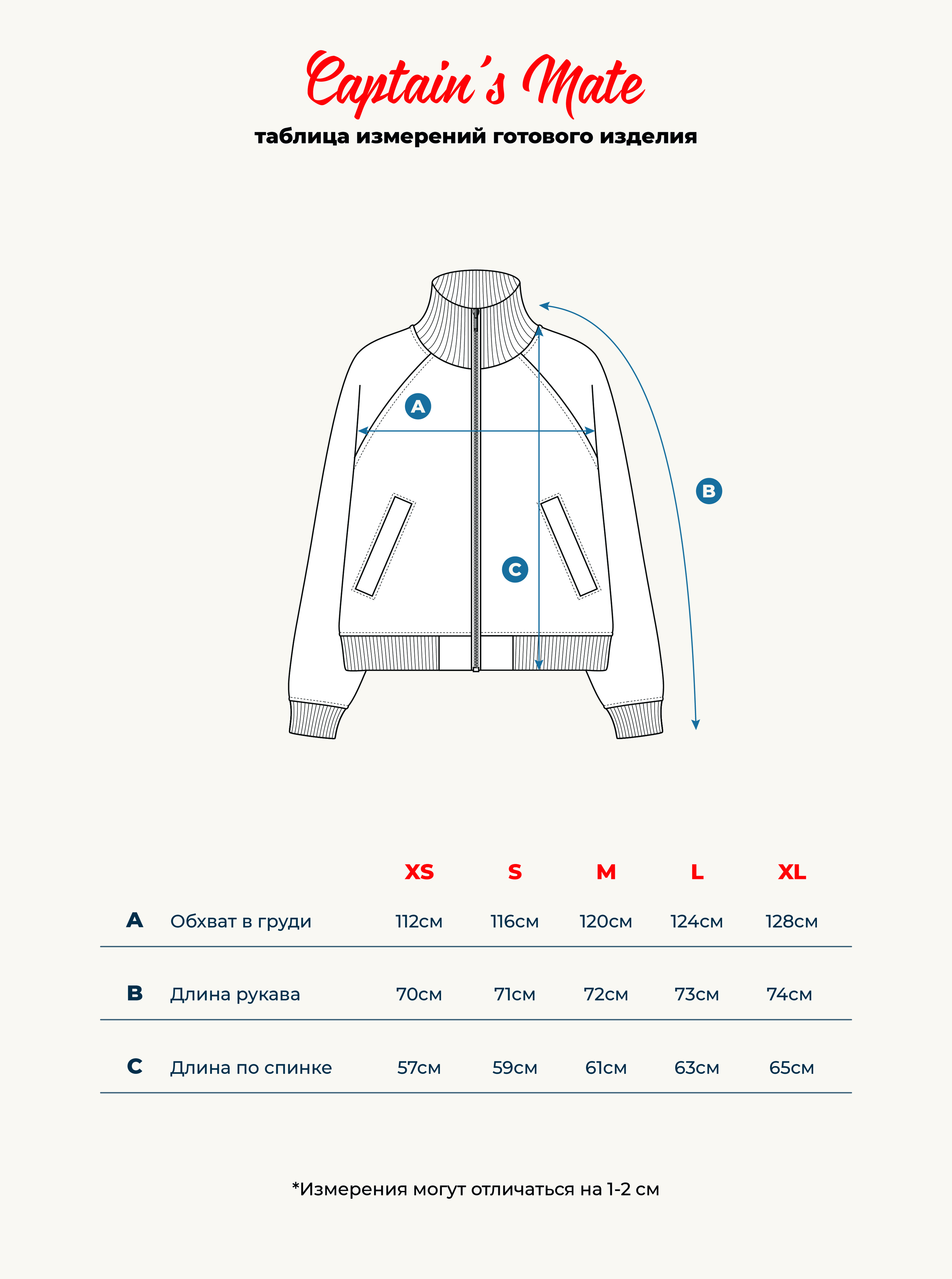 | Размер | Длина по спинке | Длина рукава | Обхват груди |